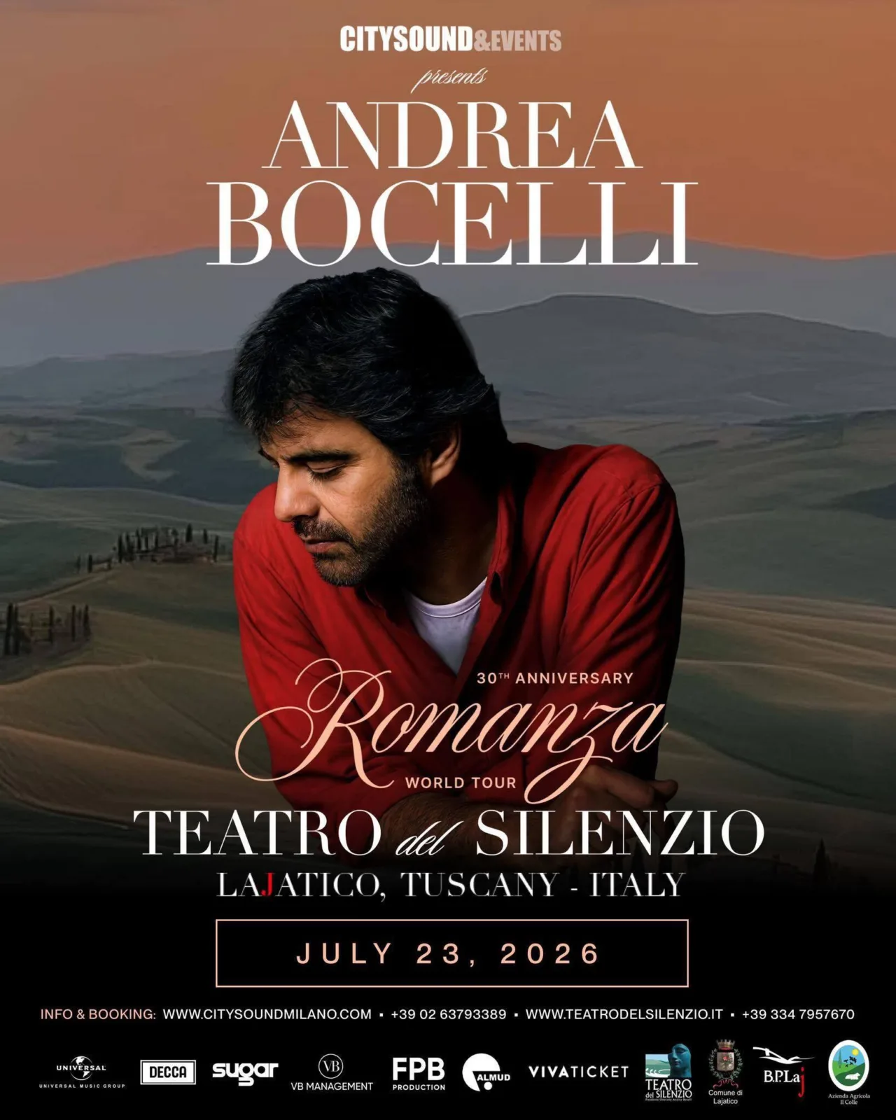 Hver sommer inviterer Andrea Bocelli til opptreden i hjembyen sin i Toscana. TravelMaker har sikret seg et begrenset antall billetter til denne forestillingen, som er svært ettertraktet. Dette er en unik mulighet til å oppleve en av verdens mest berømte operasangere i hans egen hjemby.